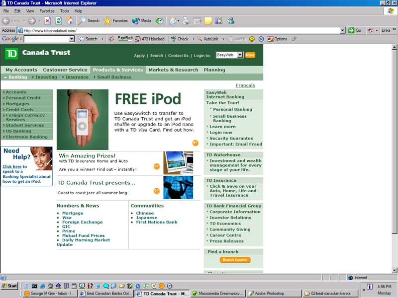 Best Canadian Banks top 10 Online TD Canada Trust, Td Canada trust.ca, td Canada trust easy web, bank, online banking, chequing account, saving account, personal credit, mortgages, credit cards, foreign currency cervices, us banking, apply online for credit card, apply for a credit card, credit card deal, credit card debt, credit card processing, business credit card, credit card application,low apr credit card, 0 apr credit card Bank of Canada, RBC Royal Bank, BMO Bank of Montreal, TD Canada Trust, Canadian Imperial Bank of Commerce (CIBC), Scotiabank - The Bank of Nova Scotia, major Canadian banks online, top Canadian banks, bank Canadian rate, bank Canadian interest rate, personal banking, checking accounts, online banking, phone banking, telephone banking, credit and loan, bill pay, find personal banking services. |